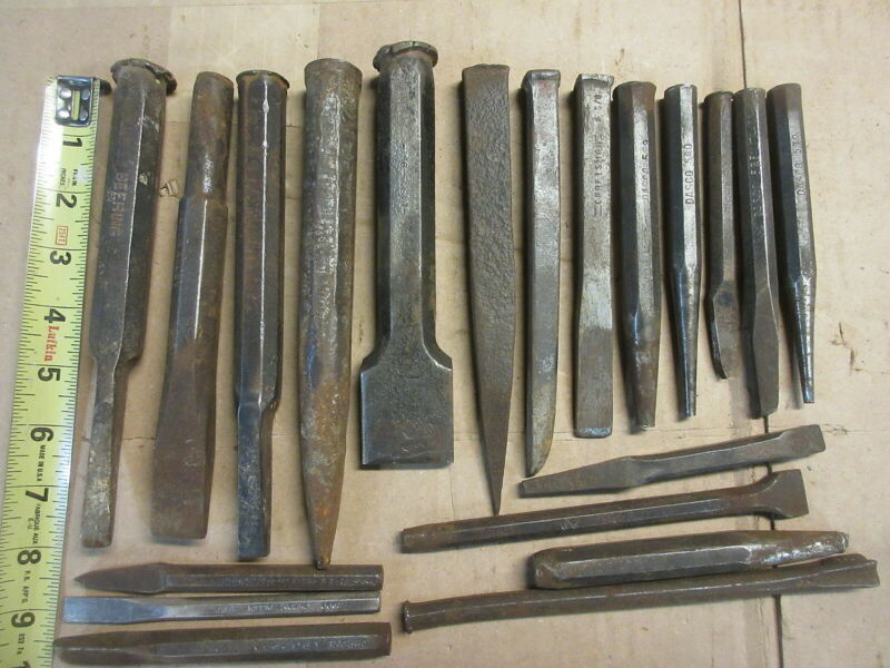 vintage lot of 20 cold chisels, drift pin, center punch stone carving blacksmith