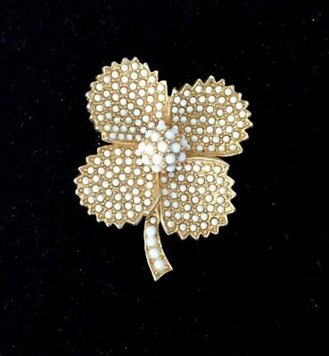 Title (ebay affiliate link): Clover Vintage Brooch Pin White Milk Glass Flower Rhinestone Jewelry lot i