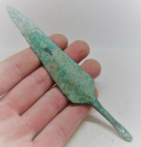 Title (ebay affiliate link): SCARCE ANCIENT MYCENAEAN BRONZE SPEARHEAD CIRCA 1600-1100BCE BATTLE OBJECT