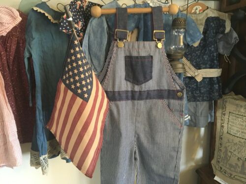 Title (ebay affiliate link): Moprimitivepast vintage little boys blue striped overalls cap shirt peg rack