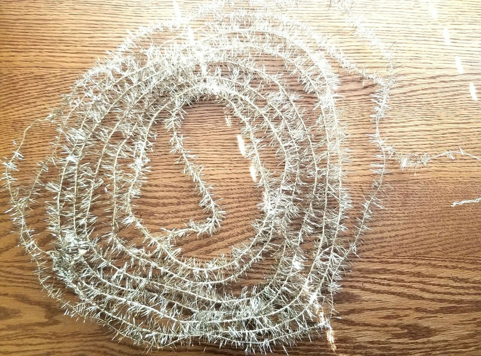 Title (ebay affiliate link): Silver Tinsel Garland. 1920s USA. 21 feet, 1.00" in width. National Tinsel Co.