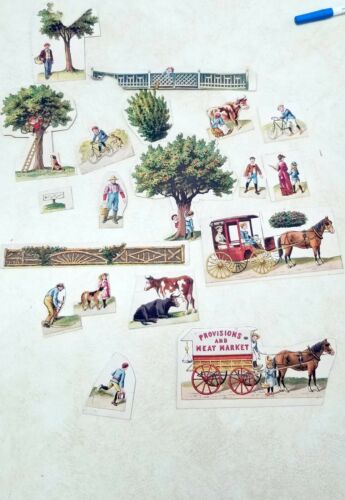 Title (ebay affiliate link): Late 1890 Mc Laughlin Cardboard figures for Houses, Kids, Wagons, Fences, etc.