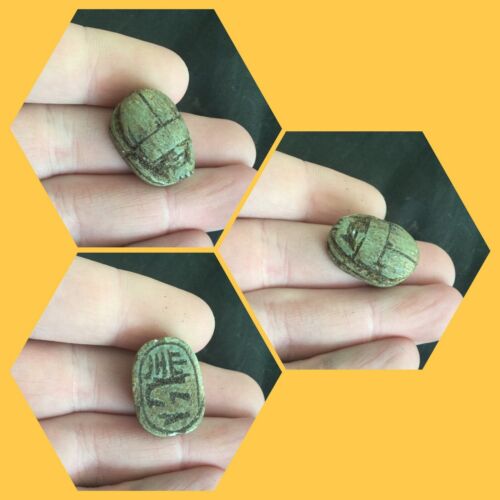 Title (ebay affiliate link): Rare ancient Egyptian blue scarab beetle with hieroglyphics, 300 bc