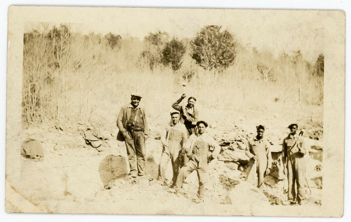 MINING ANTIQUE SNAPSHOT SHERIFF WITH BADGE & BLACK & WHITE MINERS