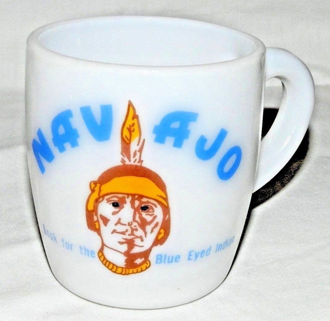 Title (ebay affiliate link): VTG NAVAJO FREIGHT LINES BLUE EYED INDIAN ADVERTISING CUP MUG WHITE MILK GLASS