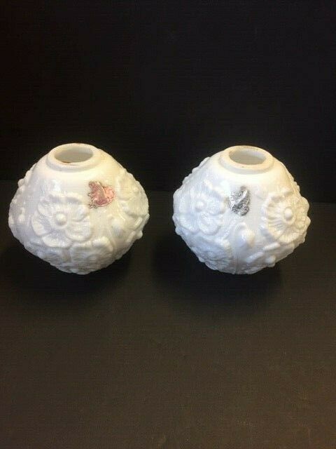 PAIR Vintage Fenton Embossed Poppy Floral Milk Glass Lamp parts