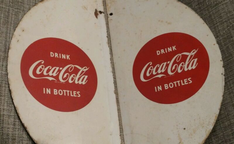 Title (ebay affiliate link): 2 VINTAGE ANTIQUE COCA-COLA SODA DISPLAY RACK BUTTON SIGN 1950s OLD COKE PEPSI