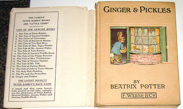 Title (ebay affiliate link): 1909 1ST EDITION GINGER & PICKLES BEATRIX POTTER - PETER RABBIT BOOKS