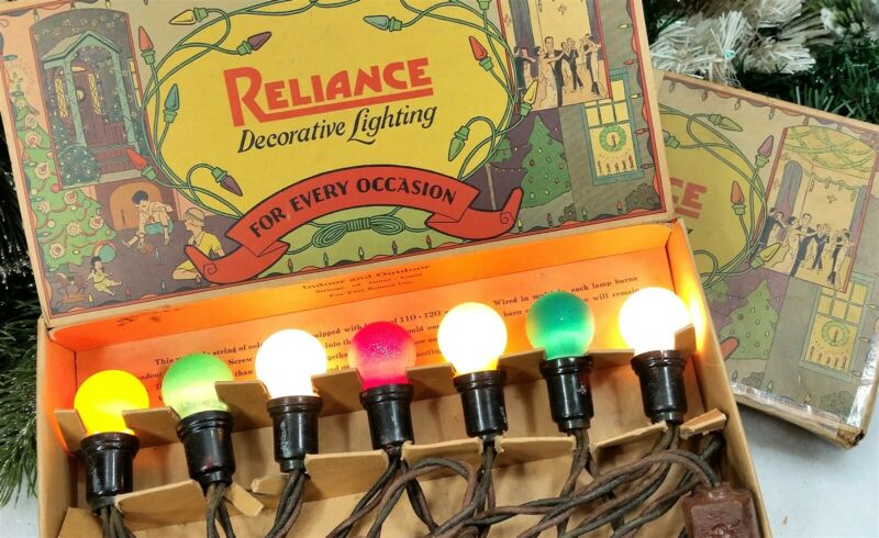 Title (ebay affiliate link): 1920s RELIANCE MAZDA Early Outside Mat Paint Round S-11 C9 Bulbs Xmas Lights Box