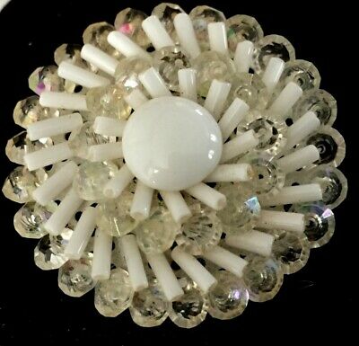 Vintage Brooch Pin SIGNED W. GERMANY Clear Glass Crystal Cluster Milk Glass w