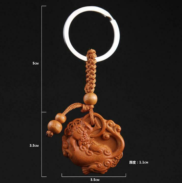 Title (ebay affiliate link): Wood Chinese handcarved Weave Pendant car lucky pixiu beast coin Key Chain