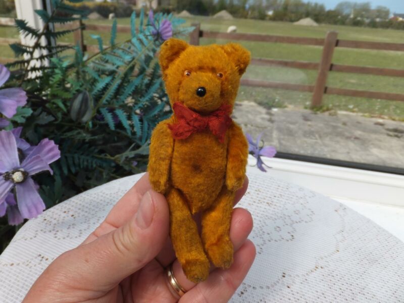 Title (ebay affiliate link): Old Vintage Antique Miniature Jointed Golden TEDDY BEAR Toy Glass Eyes & Nose 4"