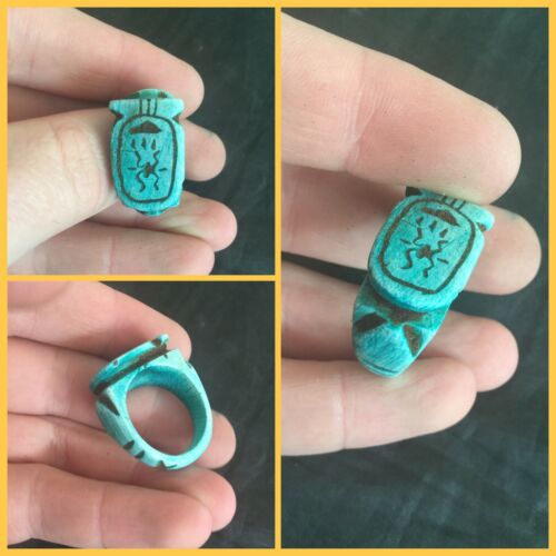 Title (ebay affiliate link): Rare ancient Egyptian blue amulet ring with hieroglyphics, 300 bc