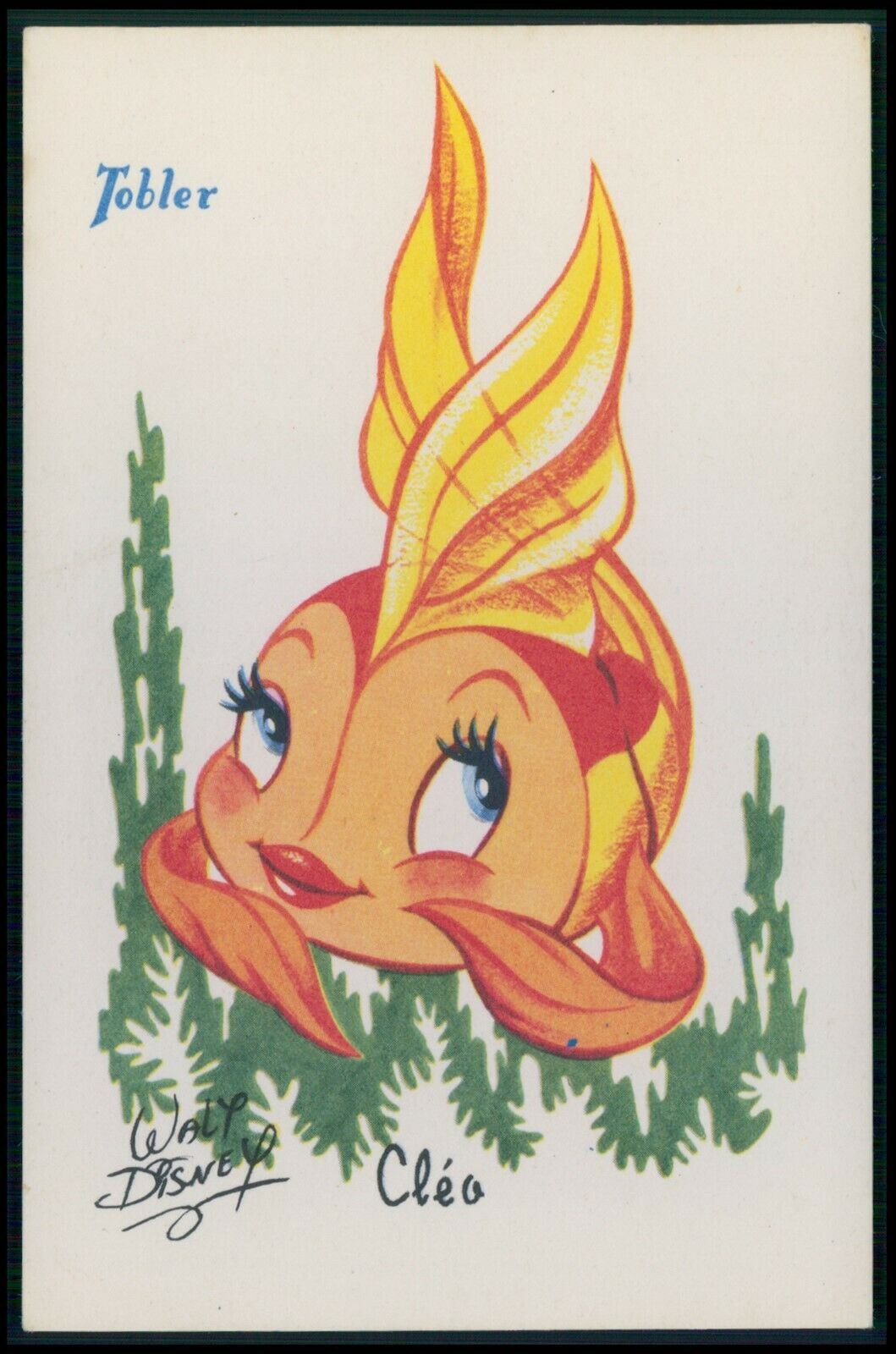Walt Disney tobler CLEO goldfish from Pinocchio original old 1950s postcard