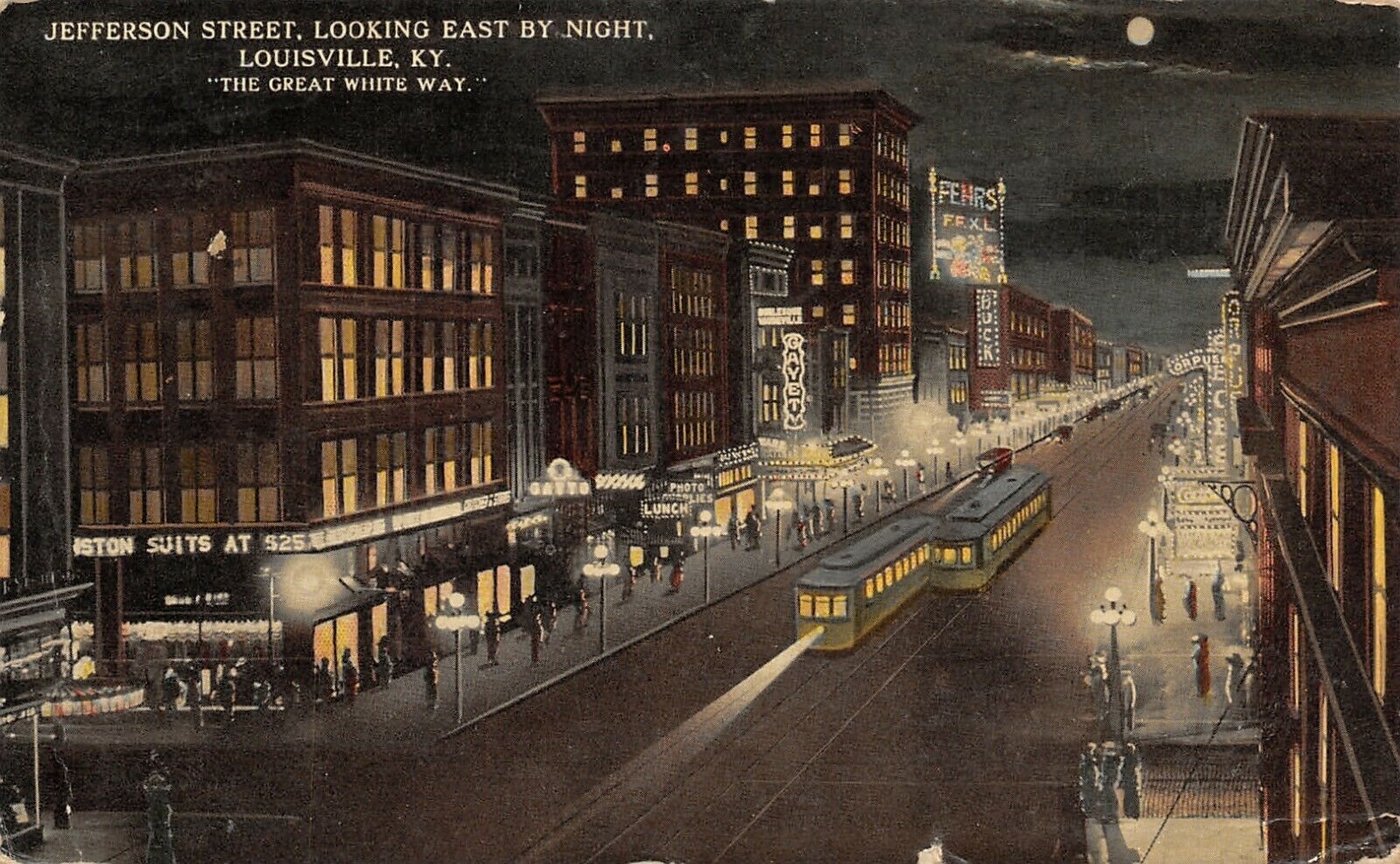 Louisville KY~Jefferson Street Night Lights~Suits $25~Gatto~Gayety~Fehrs~1913