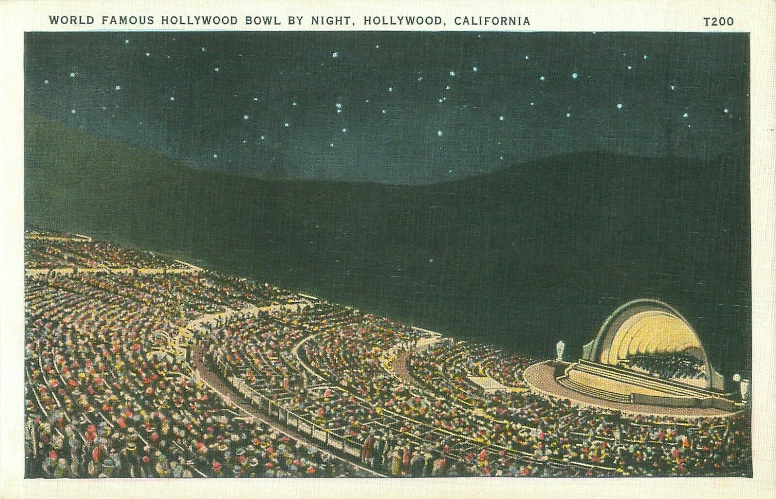 Title (ebay affiliate link): Hollywood Bowl Night View Los Angeles, California CA Linen Postcard
