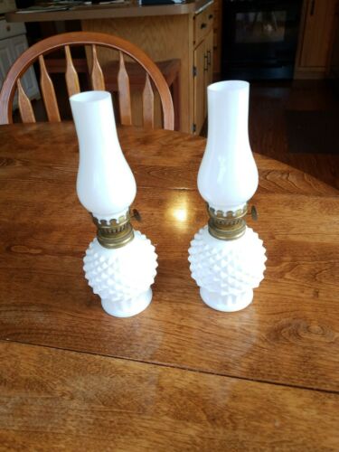 Title (ebay affiliate link): 2 Miniature Peacock Oil Lamp White Milk Glass 9" w/White Chimney Japan