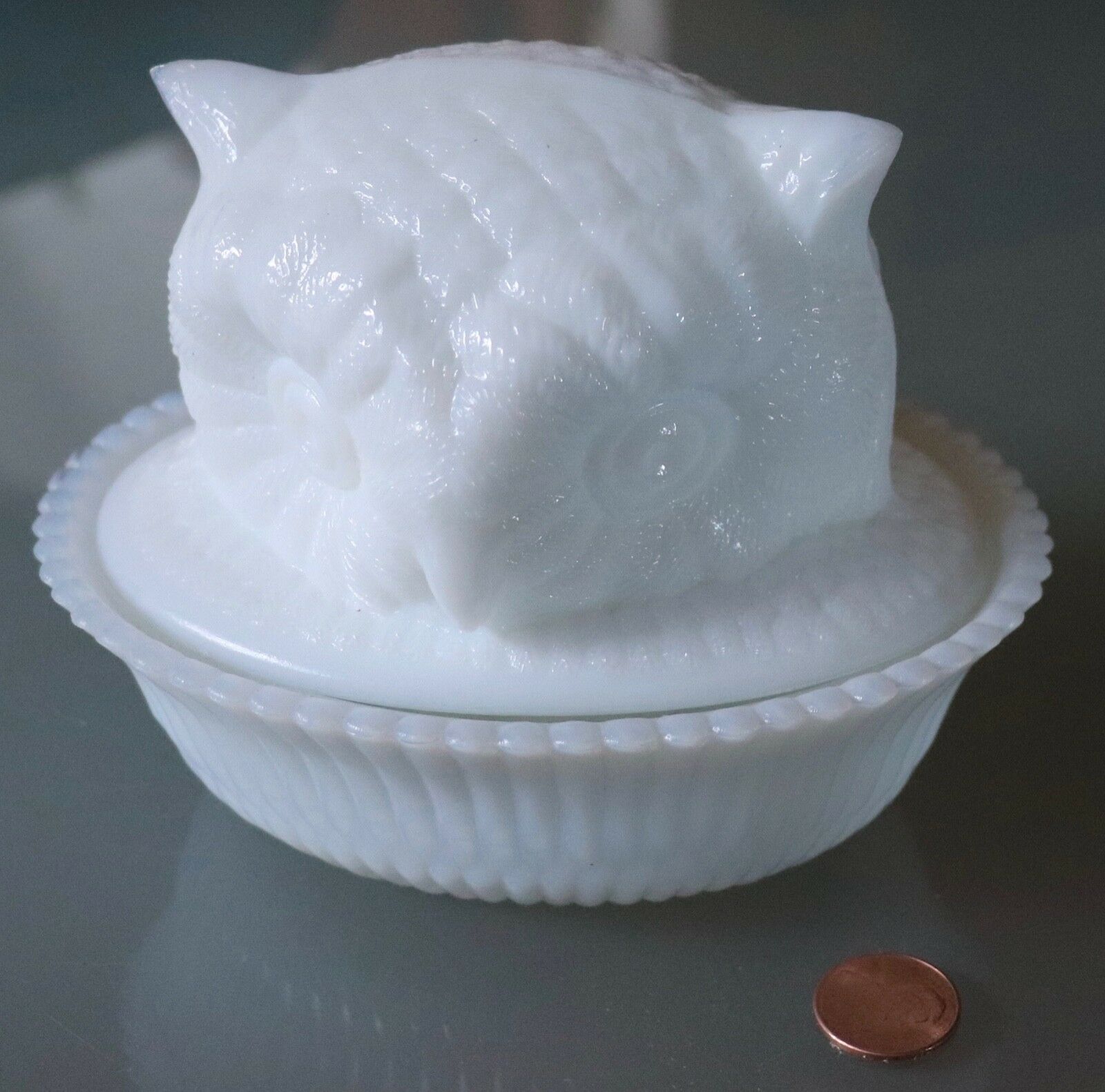 Title (ebay affiliate link): NMGCS Commemorative Milk Glass Owl Head on Basket 2002 modern reproduction