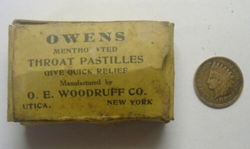 Owens Throat Pastilles O.E. Woodruff Utica NY 1900 Era Patent Medicine Paper Box