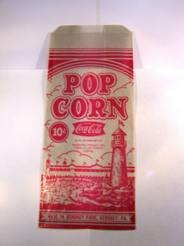 Title (ebay affiliate link): VINTAGE 1950 UNUSED HERSHEY PARK HERSHEY, PA. POPCORN BAG COCA COLA ADVERTISING