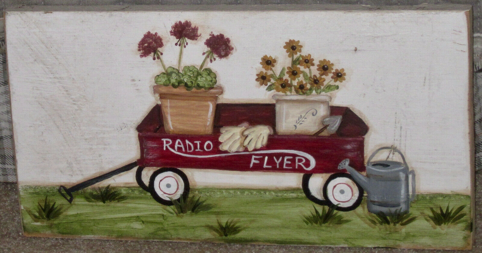 Title (ebay affiliate link): *~*PRIMITIVE*~* HP FOLK ART RADIO FLYER WAGON *~* FLOWERS *~* OLD RECLAIMED WOOD