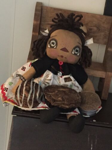 Primitive Folk Art Raggedy Ann Doll Baking Annie!! W/ Pie, Cinnamon Roll, Cake!