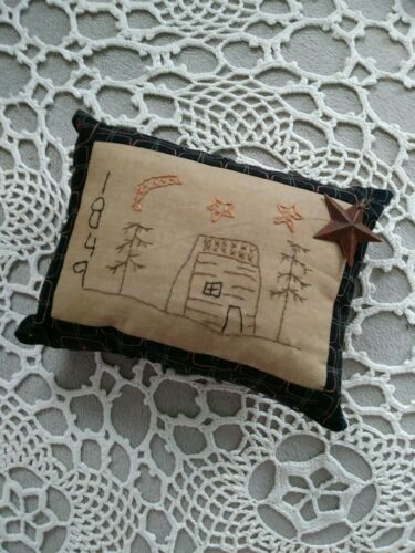 Title (ebay affiliate link): Primitive Stitchery Sampler Ornie Pillow Early Look Log Cabin 1849 Grungy Home