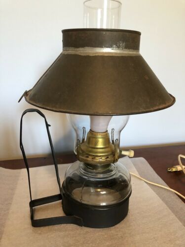 Title (ebay affiliate link): Primitive American antique Tin Coal Oil lamp/electric 13"