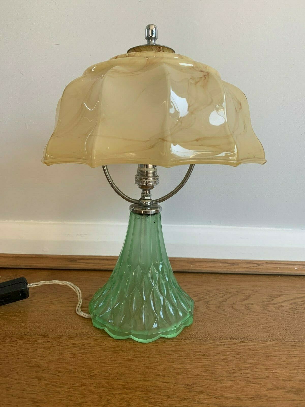 Title (ebay affiliate link): Art Deco Davidson Glass The Good Companion Table Lamp1935 with Replacement Shade