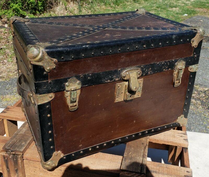 Antique Victorian Steamer Children''s Doll Sample Trunk VTG Chest Luggage Child''s