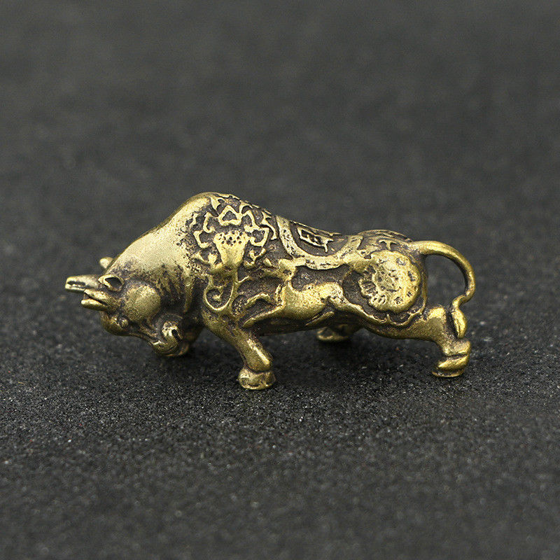 Antique Brass Crafts Carving Lucky Bullfighting Home Decoration Jewelry Pendant