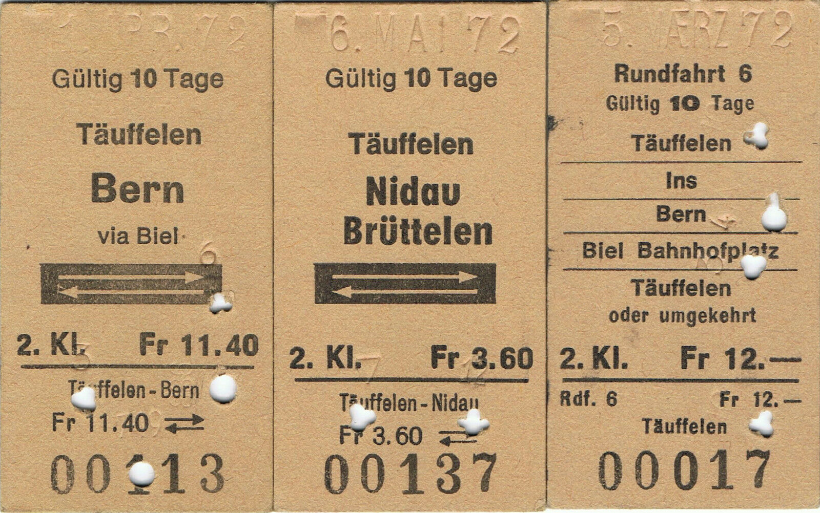Railway tickets Switzerland Tauffelen various well used issues from 1972