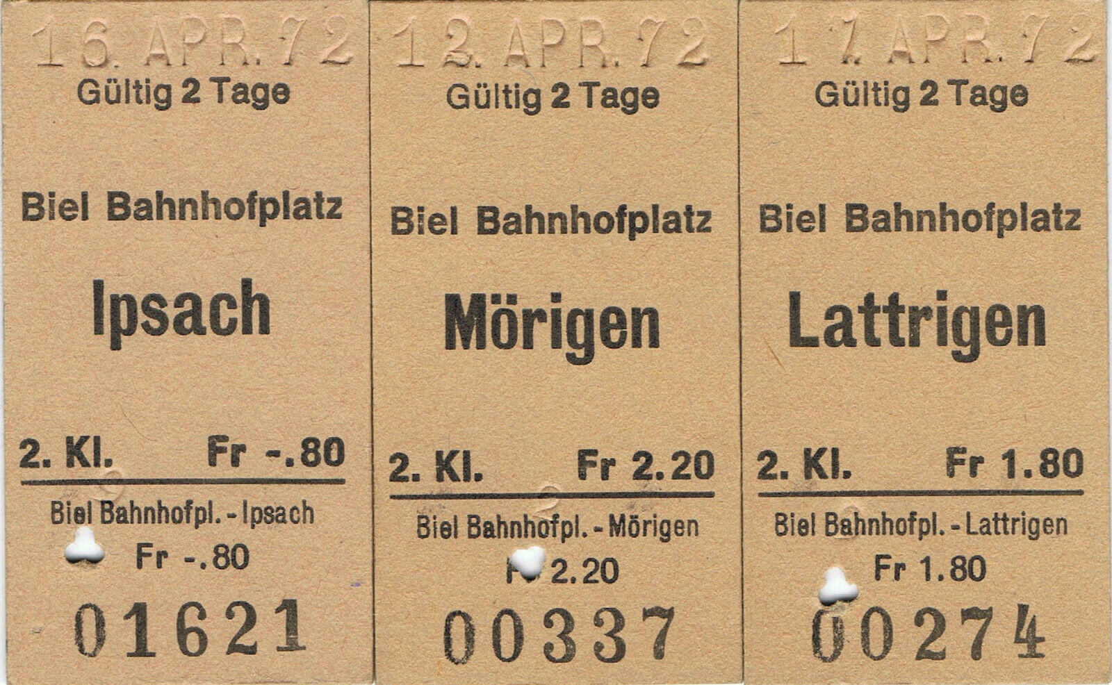 Title (ebay affiliate link): Railway tickets Switzerland Biel-Bahnhofplatz various well used singles 1972