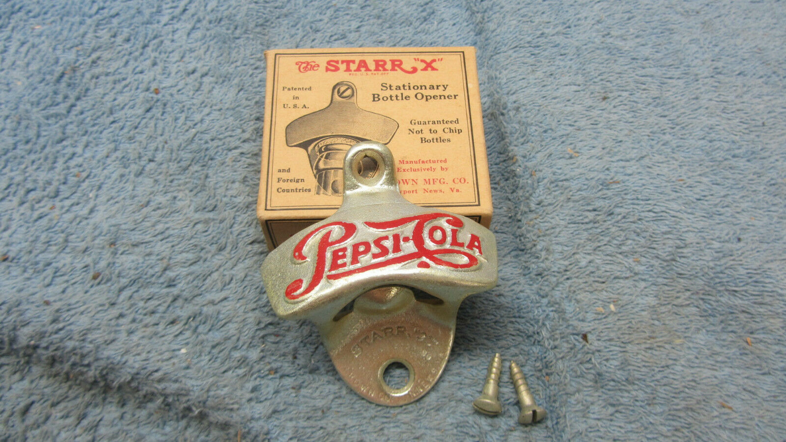 Title (ebay affiliate link): Vintage Pepsi-Cola Starr X Bottle Opener NOS in Box with Screws