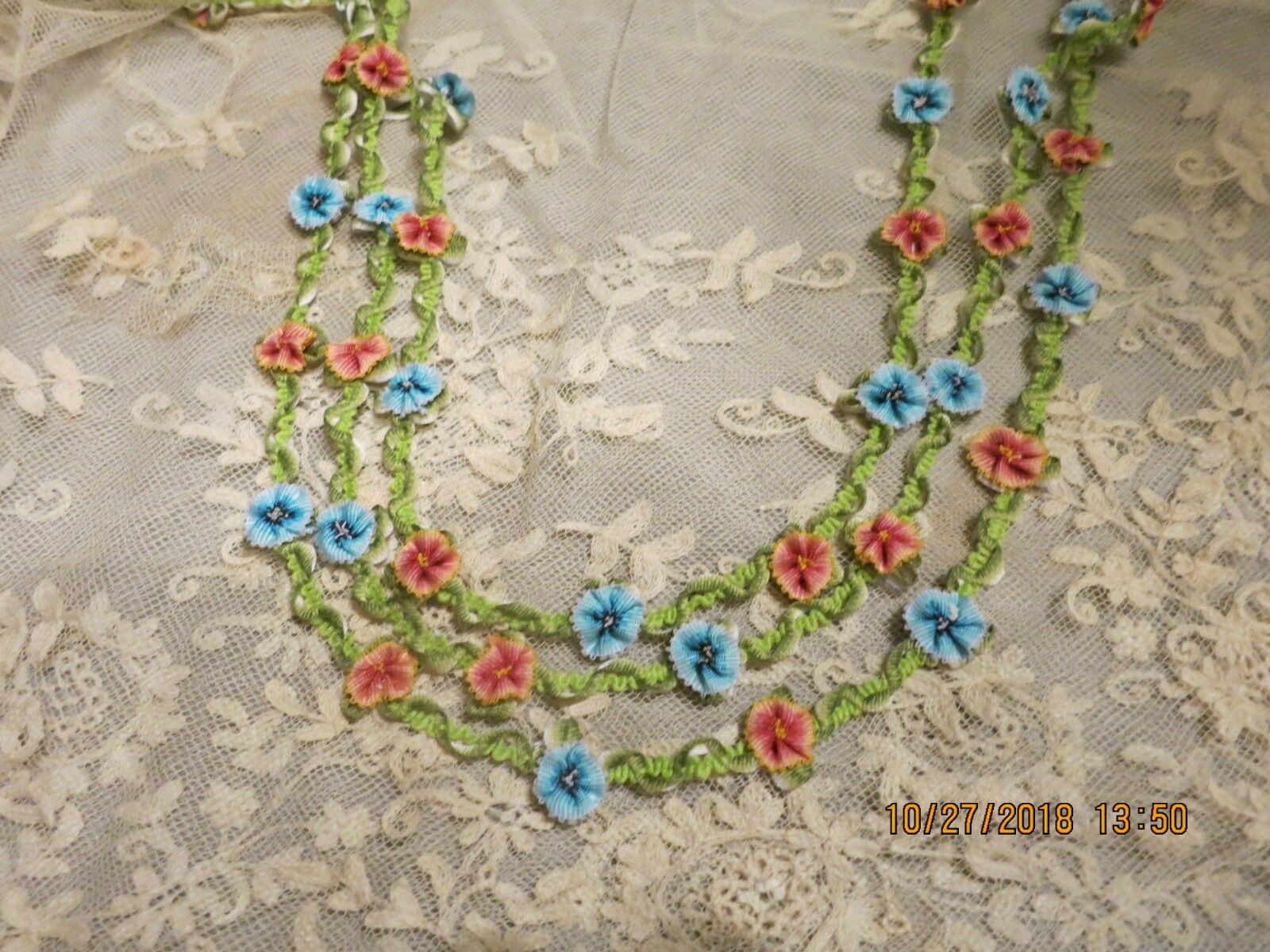 Title (ebay affiliate link): ROSETTE PASSMENTERI OMBRE ANTIQUE DOLL TRIM CLOTHES HATS CRAZY QUILTS 30"