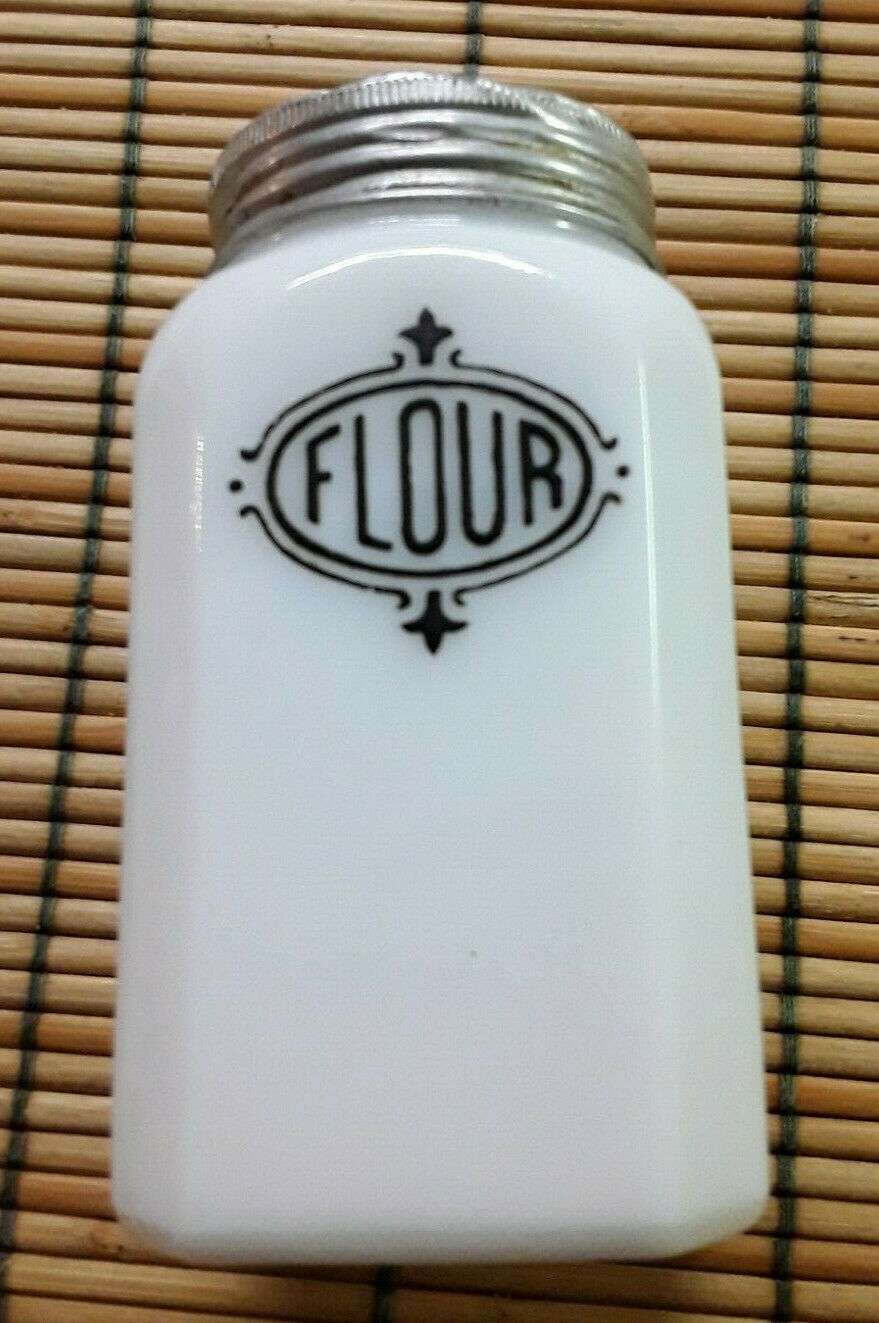 Vintage Original FLOUR Hazel Atlas White Milk Glass ART DECO Shaker