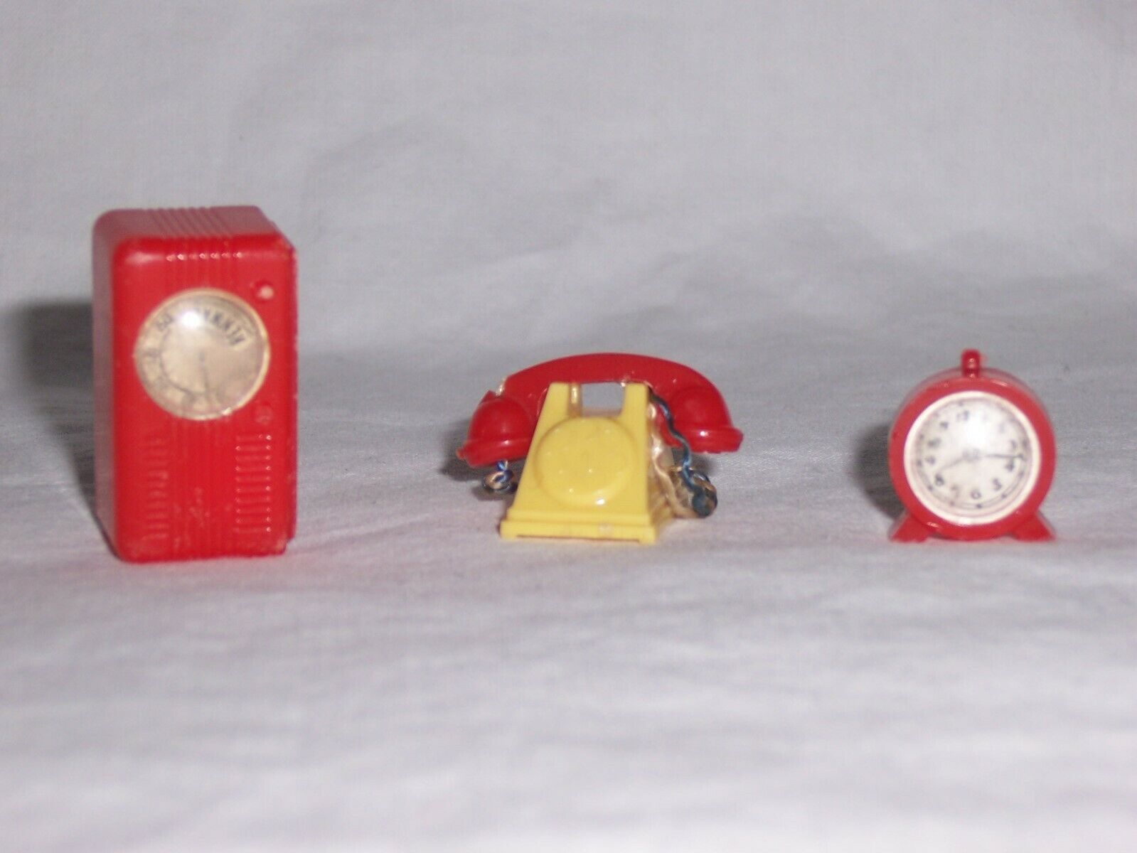 Vintage Renwal Dollhouse Furniture Accessory Lot RADIO TELEPHONE ALARM CLOCK