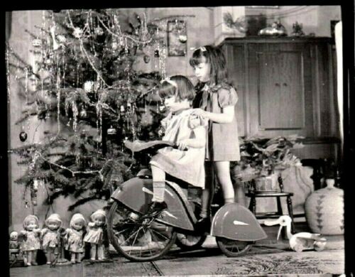 Title (ebay affiliate link): PHOTOGRAPH GIRLS CHRISTMAS TREE TOYS TRICYCLE PULL-TOY DOLLS INDIAN BASKET PHOTO