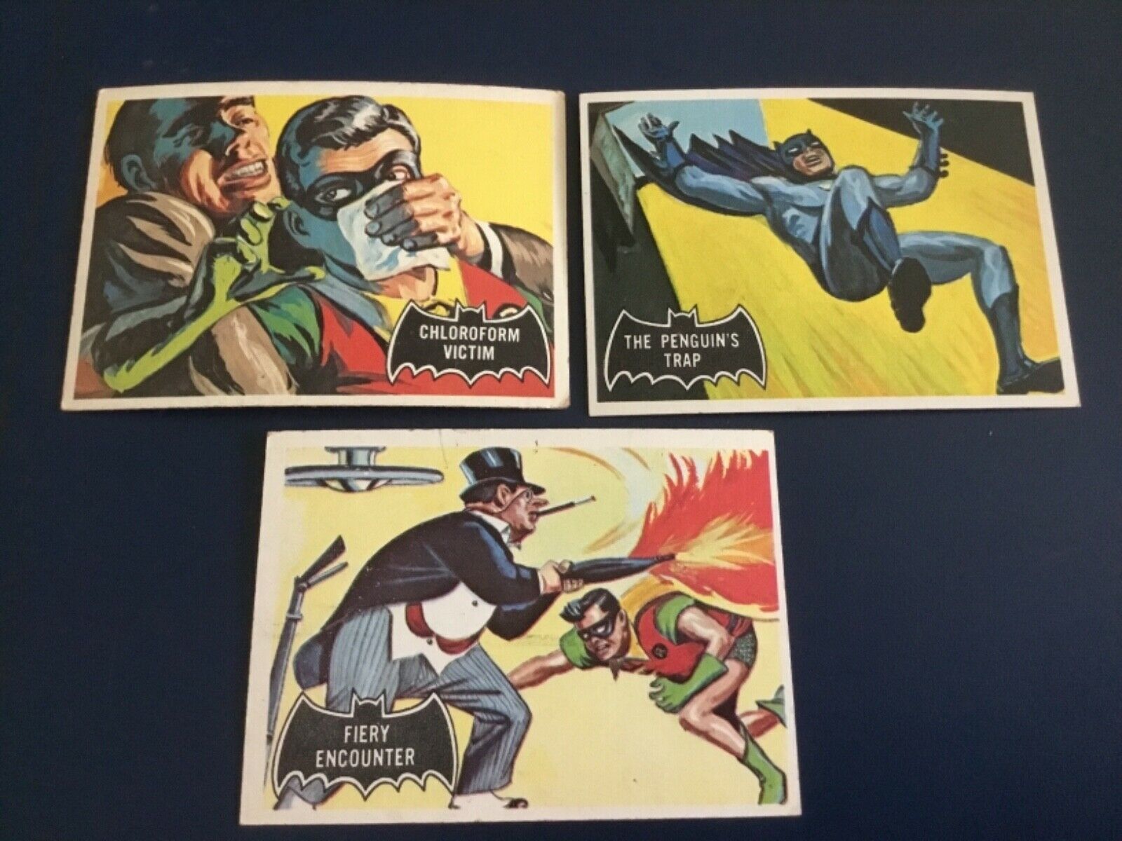 Title (ebay affiliate link): 1966 TOPPS BATMAN BLACK BAT LOT X 3 NO. 6,16,19