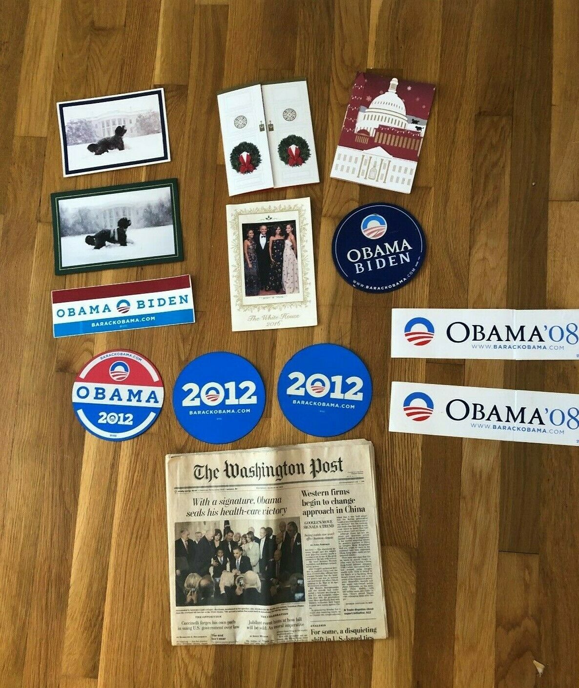 Title (ebay affiliate link): President Obama Memorabilia Xmas Cards, Buttons, Stickers, Magnets & Newspaper