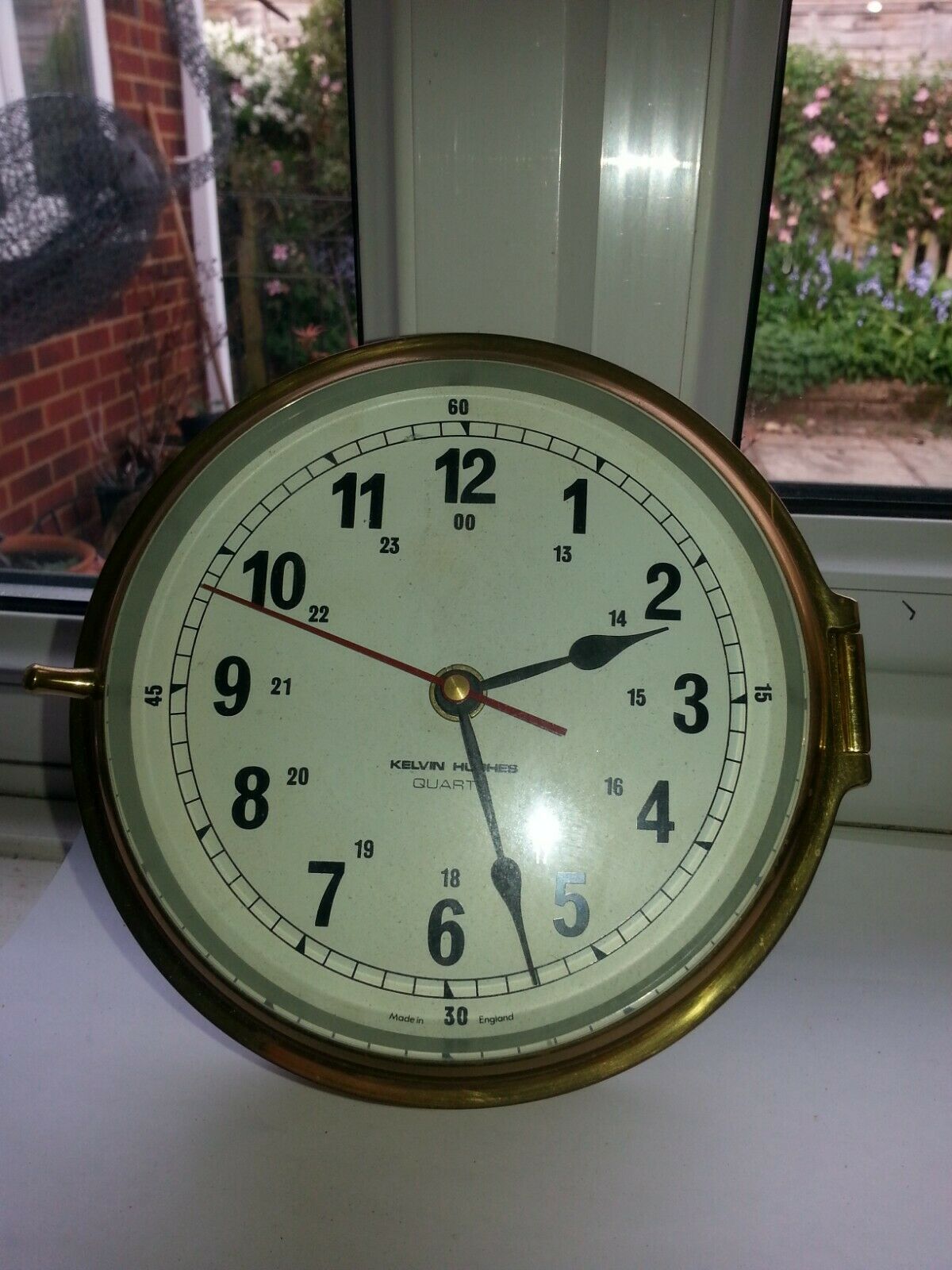 KELVIN HUGHES BRASS SHIPS BULKHEAD CLOCK