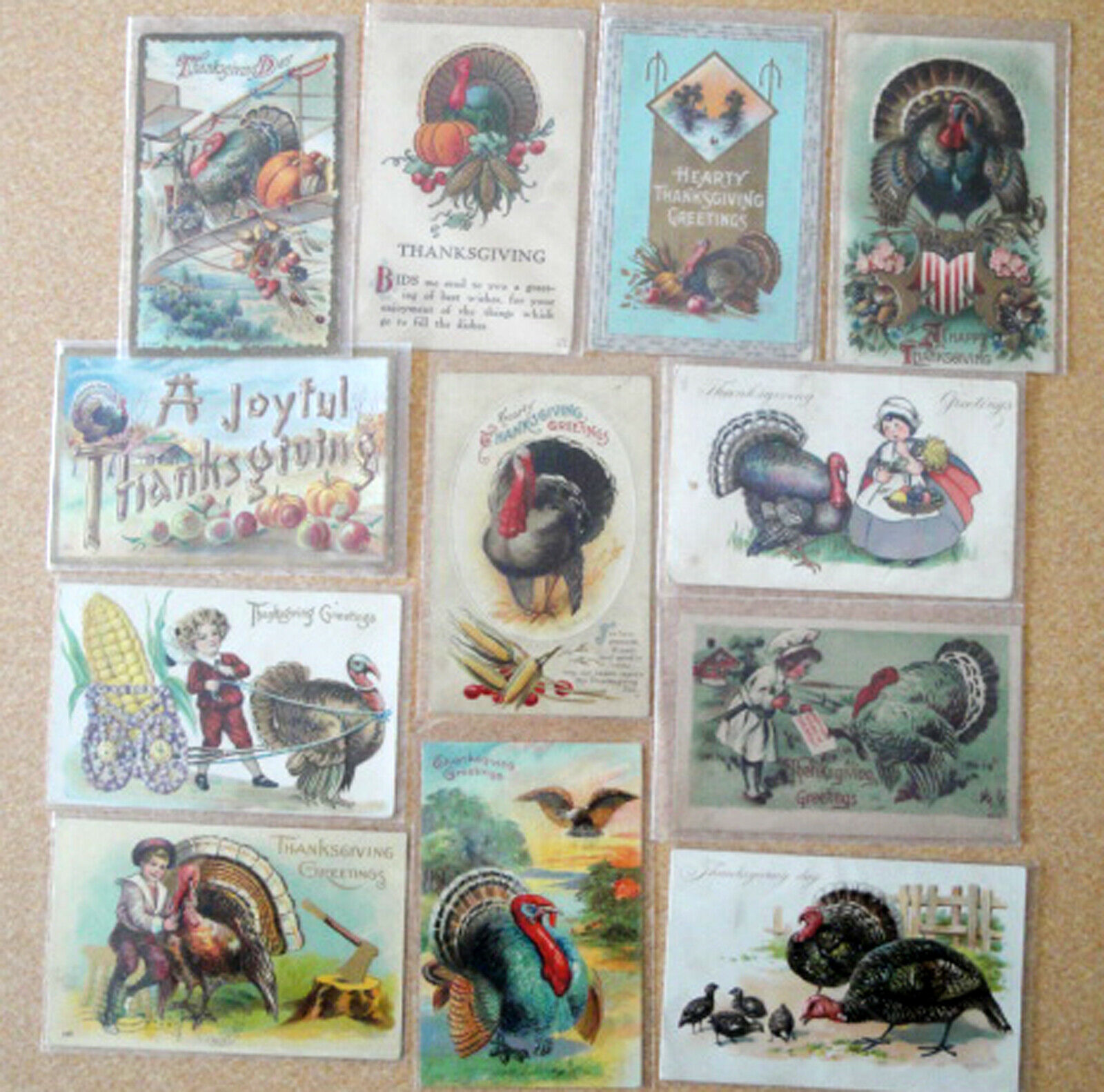 Beautiful Antique Vintage Thanksgiving Post Card Lot of 12 Postcards Set Three