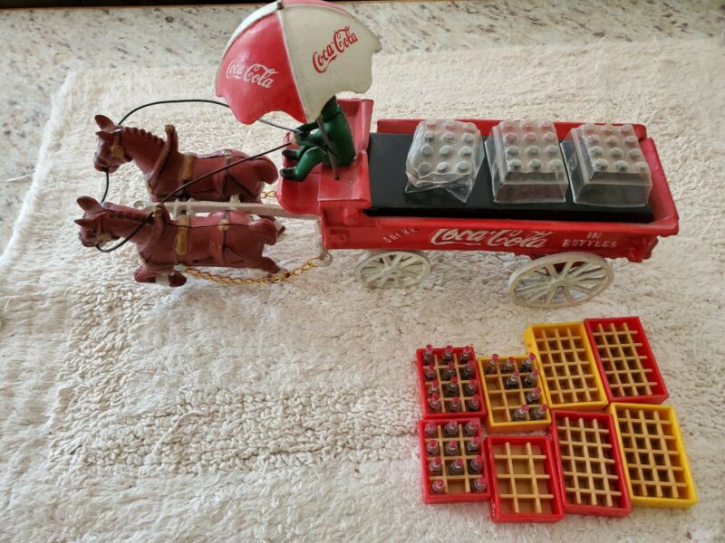 Title (ebay affiliate link): Vintage Cast Iron Coca Cola Horse Drawn Wagon with Bottles Crates & Driver