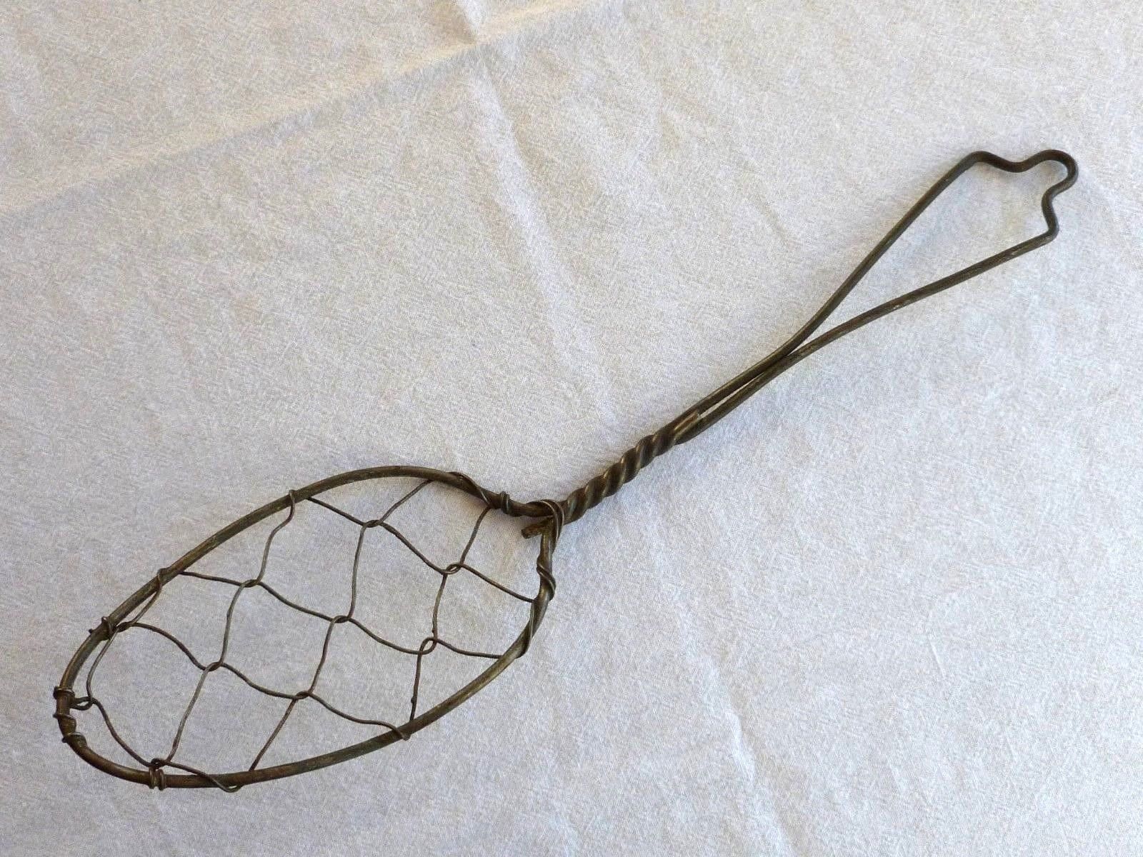 ANTIQUE WIRE EGG WHIP WHISK STRAINER Diamond Pattern Kitchen Decor Old Utensil