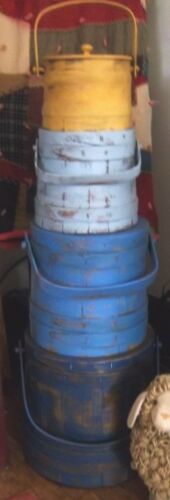Title (ebay affiliate link): Small Vintage FIRKIN Sugar Bucket SHAKER Antique Primitive Lid Bands WOOD Yellow