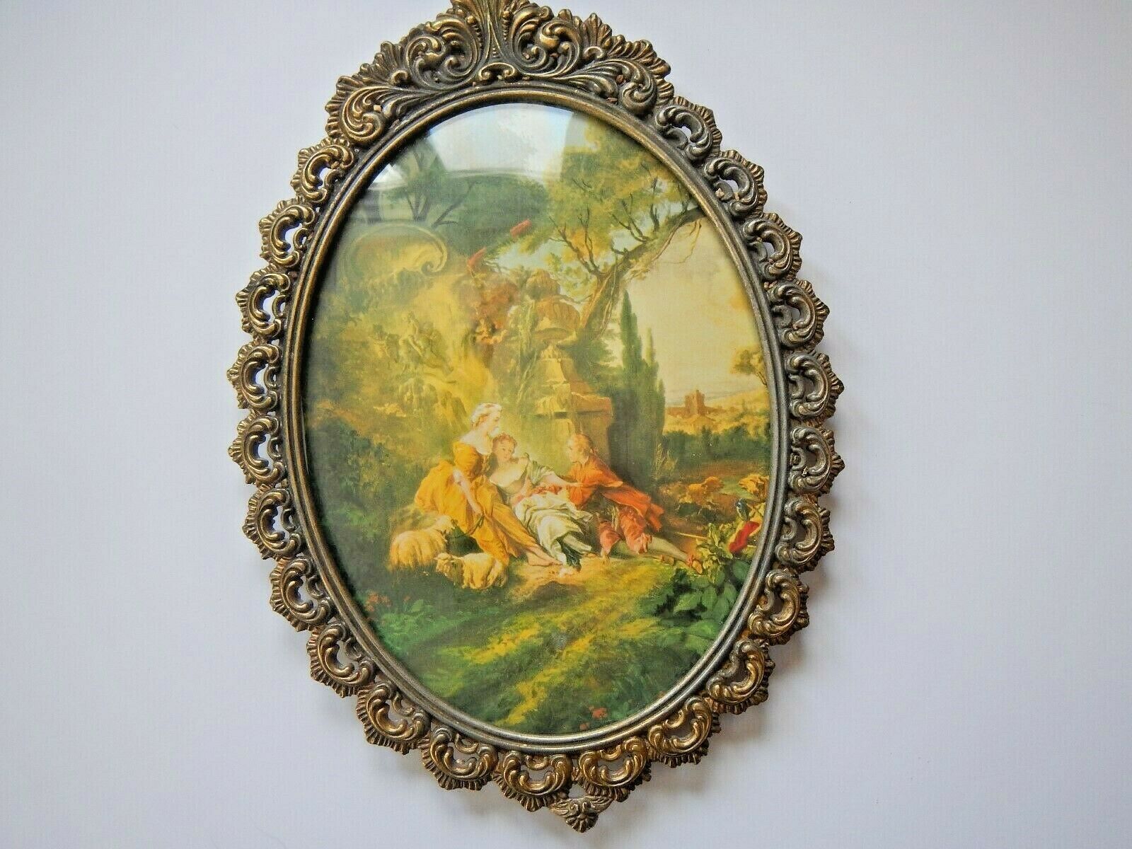 ITALIAN BRASS OVAL HANGING PICTURE FRAME Vintage Art Nouveau