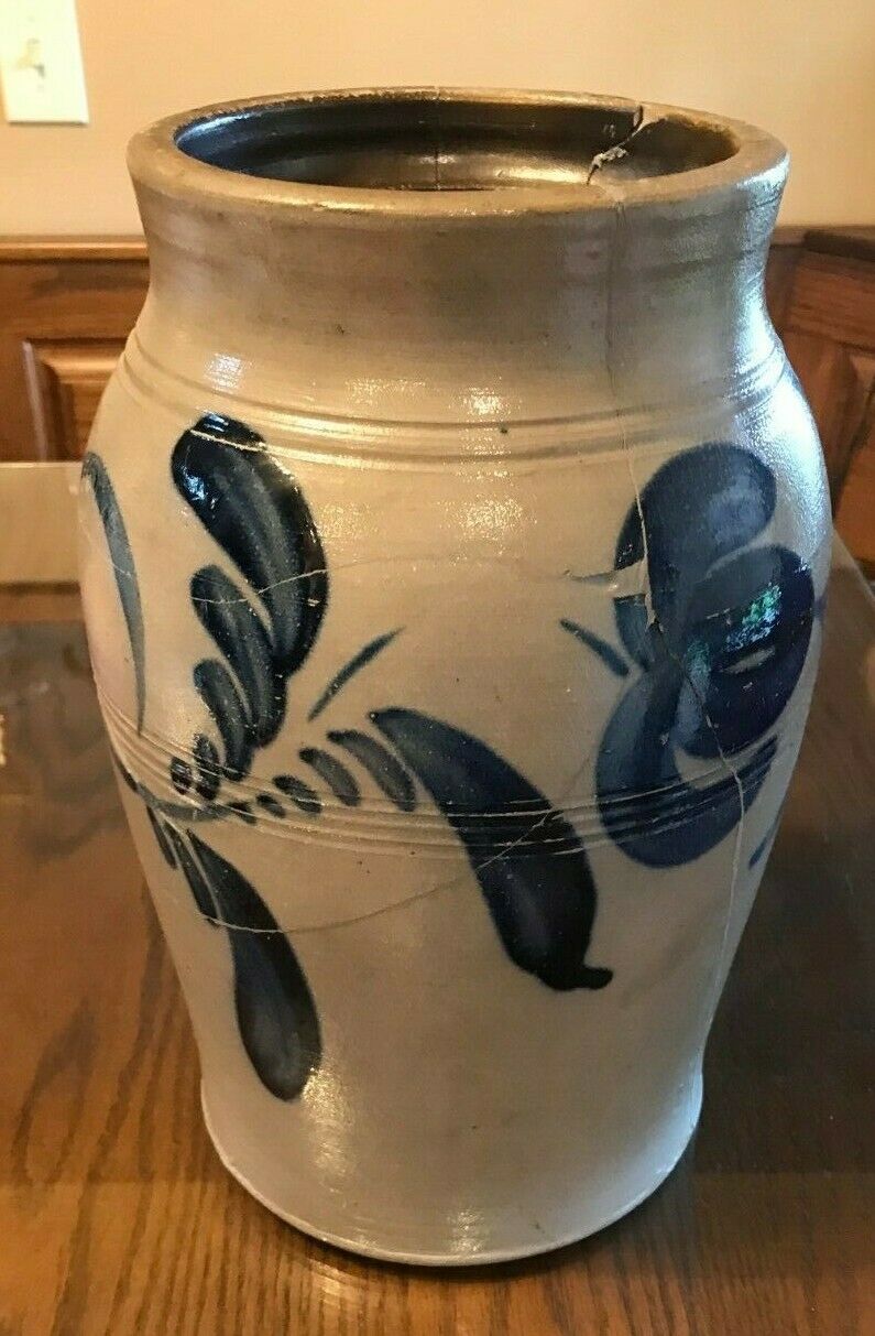 Title (ebay affiliate link): Western PA Salt Glazed Stoneware Cobalt Flower 2 Gal Crock Glued and Cracked