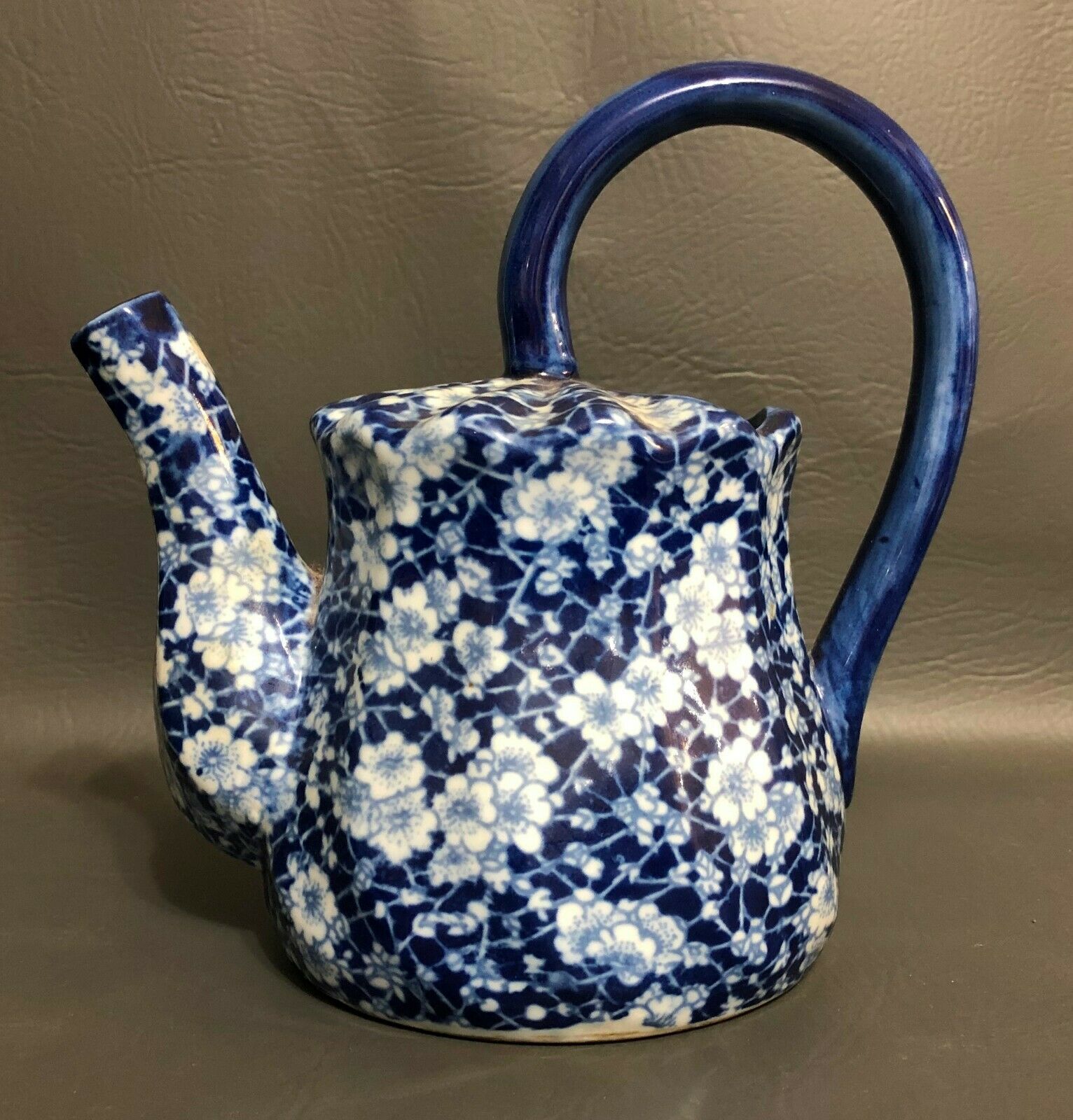 Antique Victoria Ironstone Blue and White Flower Pitcher Watering Can