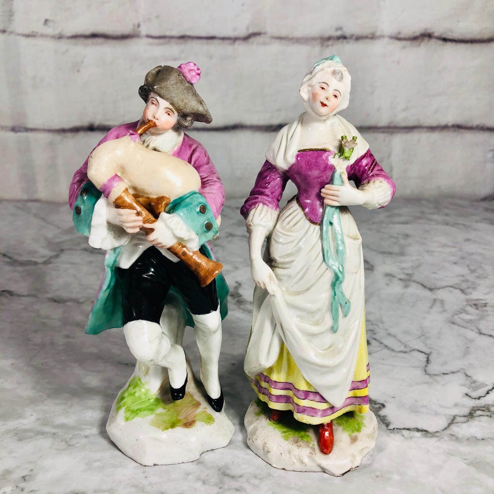 Antique Pair of Dresden Germany Figures Bagpipes Handpainted
