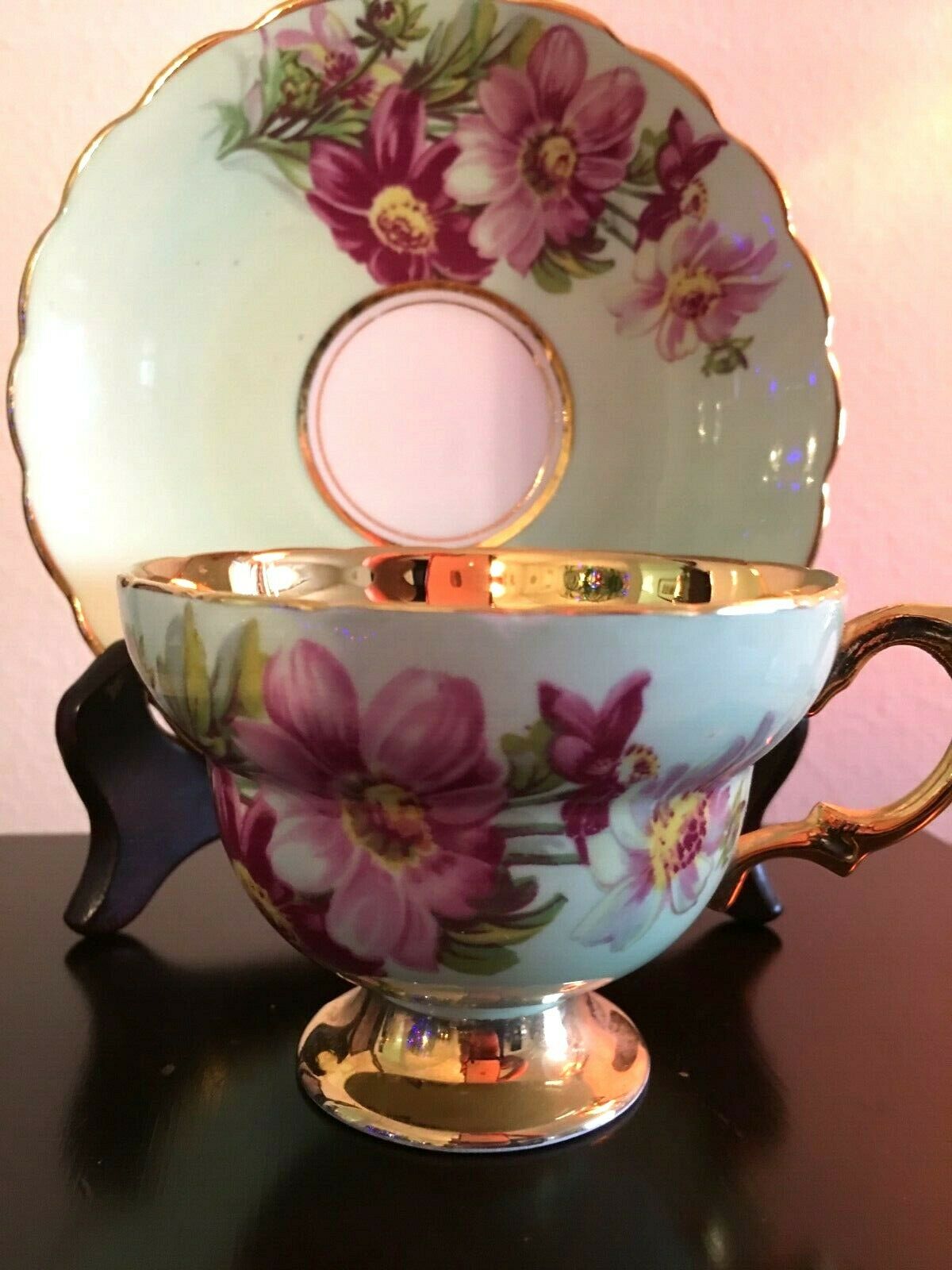 Title (ebay affiliate link): Vintage English Rosina Fine Bone China Tea Cup and Saucer Floral and Gold